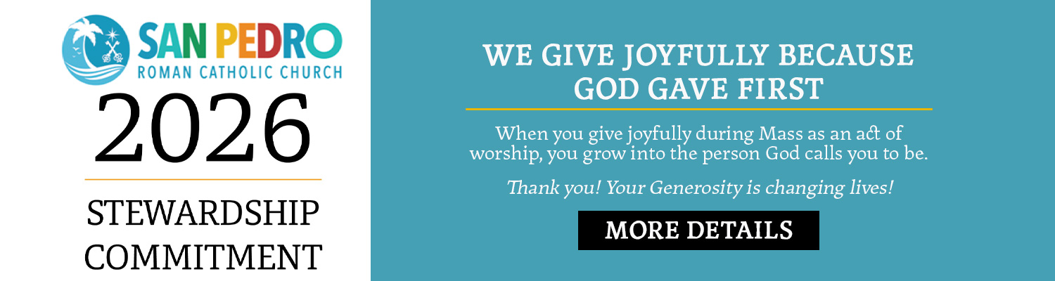 I am proud to present this new website to you so that you may better know the opportunities available to you to experience the joy of the Gospel while in San Pedro. All are welcome and whether you are a sinner or a saint there is an opportunity for you to grow in the love of God and your neighbor. Know we pray everyday for everyone in San Pedro and those who visit.